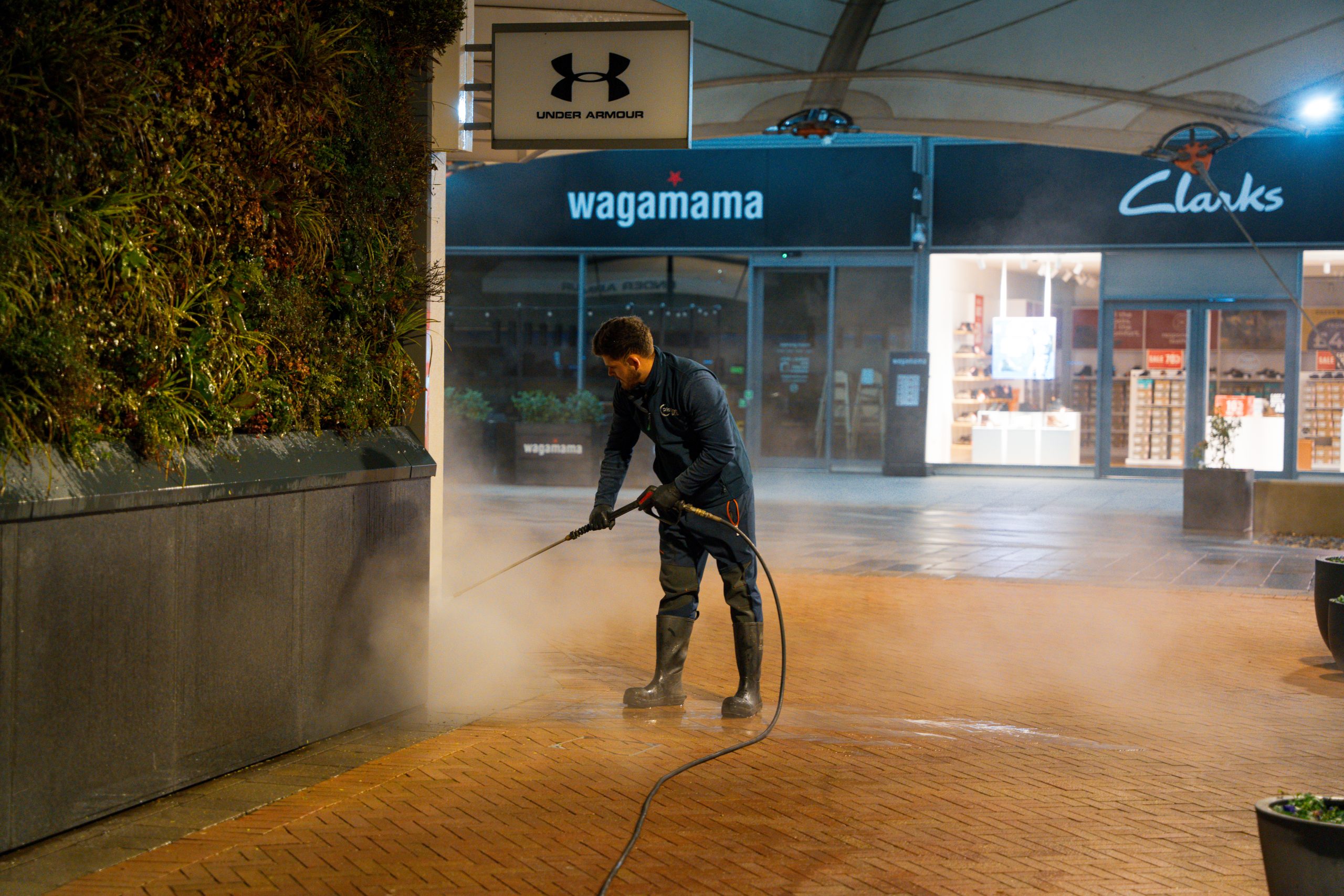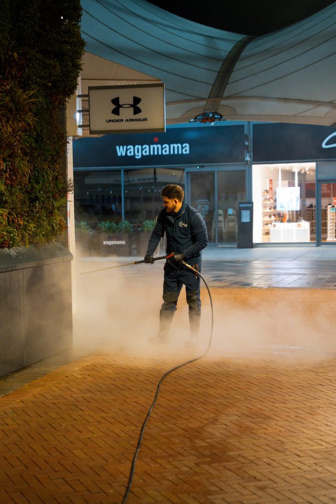 For elevated sections of the building, a MEWP (Mobile Elevated Work Platform) was deployed, allowing our operatives to carry out high-level façade cleaning in Ashford safely, efficiently, and with precision. All works were completed by fully trained and certified technicians, in full compliance with current health and safety regulations.